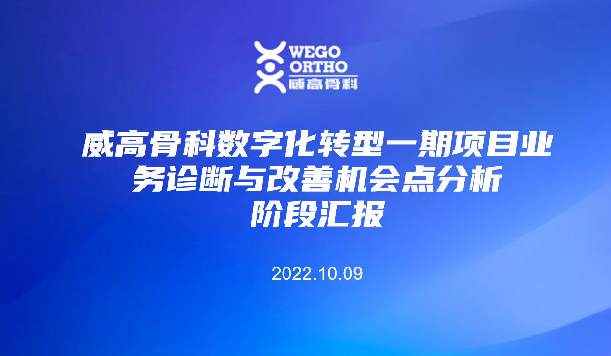 2022年10月9日星期日上午,威高骨科產(chǎn)業(yè)集團(tuán)數(shù)字化轉(zhuǎn)型一期項(xiàng)目業(yè)務(wù)診斷與改善機(jī)會(huì)點(diǎn)分析階段匯報(bào),在威高骨科行政辦公樓一樓會(huì)議室隆重舉行。